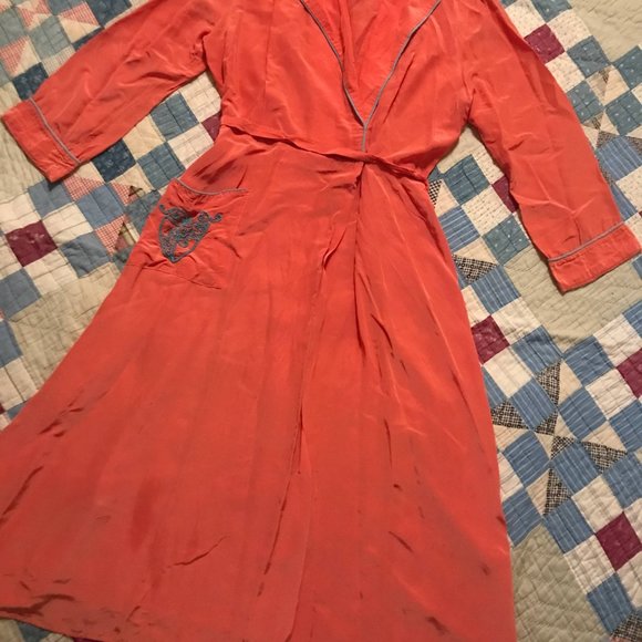 American Vintage Intimates Sleepwear Vintage 94s Cold Press Rayon Satin Boudoir House Dress Robe Maxi Dress Coral Poshmark